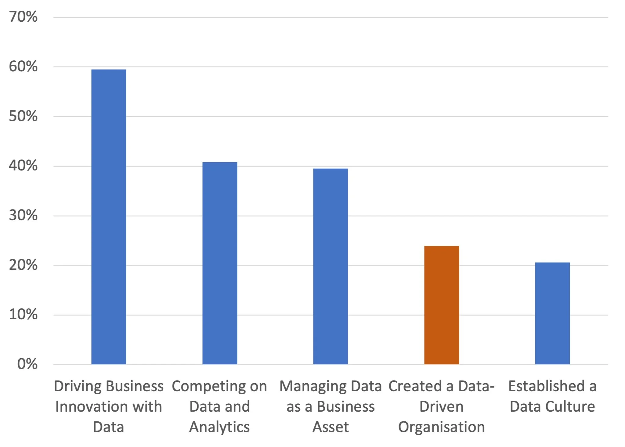 Fewer than a quarter of data executives in leadership positions say their organisation has become data driven.